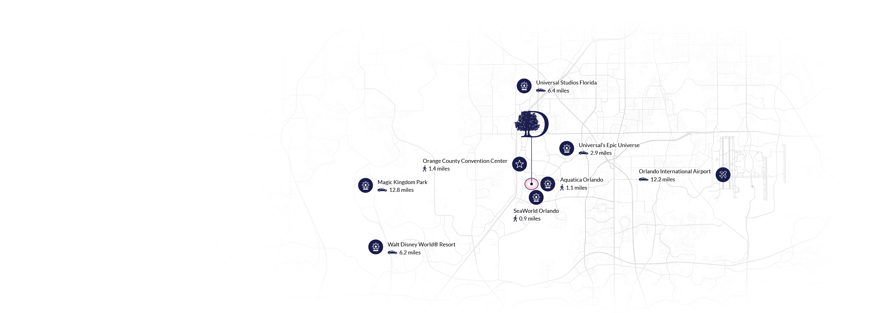 SeaWorld is just steps away, Disney and Universal are an easy shuttle ride, and Epic Universe is close enough to catch its fireworks from our Tower Rooms. Even the convention center and MCO are a quick, low-stress drive.
